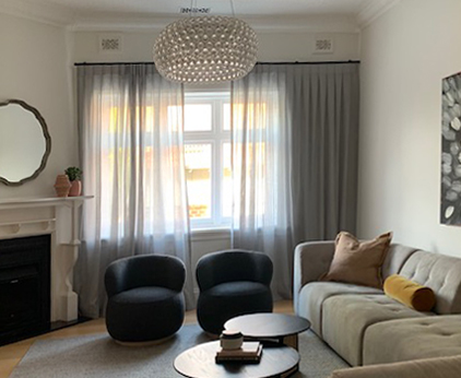 One of the more popular treatments are a Sheer Curtain in front of a Coloured or plain Blockout Lining, which gives you the option of Daytime privacy with the sheer, as well as Blocking the light out for those Early sunrises.